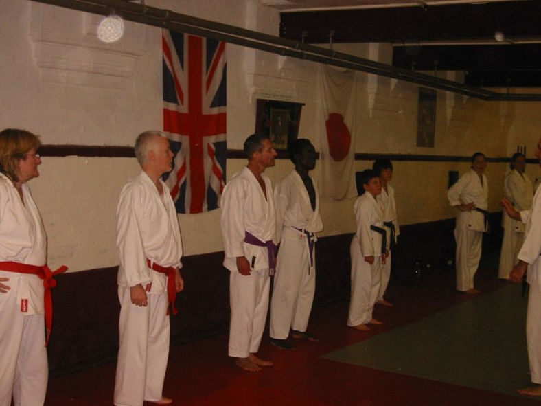 Samstagmorgen um 9:00 Uhr ein "Continental"-breakfast und ab zum Dojo des Karate Club Leicester, ziemlich versteckt an der Humberston Gate in einem Kellergeschoss eingerichtet. Bereits in den Fünfzigern des letzten Jahrhunderts noch als Judo-Dojo gegründet, gilt es heute als eines der ältesten Karate-Dojos auf den Inseln überhaupt. Dieses Dojo, liebevoll gepflegt, atmete eine anheimelnde, sehr persönliche Atmosphäre und es war uns, als wohne hier ein langjähriger, durch intensives Karate-Training geformter und der Erhabenheit des Do verpflichteter Geist. Weder die Kleinheit noch die "tropisch-dicke" Luft nach jedem Training (Kondenswasser tropfte von der Decke und rann an den Wänden herab) konnten diesen Eindruck schmälern, im Gegenteil: Sie verliehen ihm zusätzliches Gewicht, Materialität gewissermaßen!